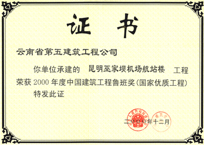 昆明市第一人民醫院外科住院大樓—2005年度“AAA級安全文明標準化誠信工地”